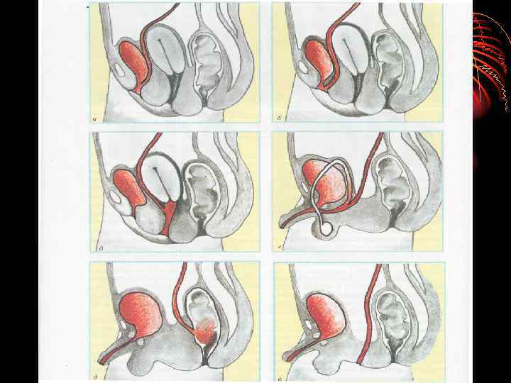• АНОМАЛИИ МОЧЕВОГО ПУЗЫРЯ • Основными пороками развития мочевого пузыря являются его экстрофия и дивертикул. • Экстрофия мочевого пузыря — врожденная расшелина его передней стенки и прилежащих к ней брюшных покровов. Как правило, при этой аномалии наблюдается также отсутствие пупка, расхождение лобковых костей, недоразвитие половых органов.
