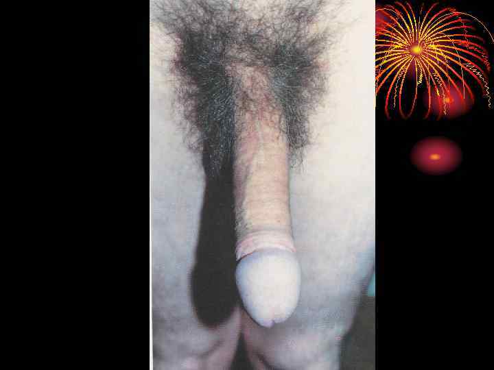 • АНОМАЛИИ ПОЛОВОГО ЧЛЕНА • Самым частым пороком развития полового члена является фимоз — врожденное сужение крайней плоти, не позвляющее обнажить головку. • В самые первые годы жизни у мальчиков препуциальная полость еще не раскрывается, крайняя плоть имеет хоботкообразный вид. Это состояние принято называть физиологическим фимозом.