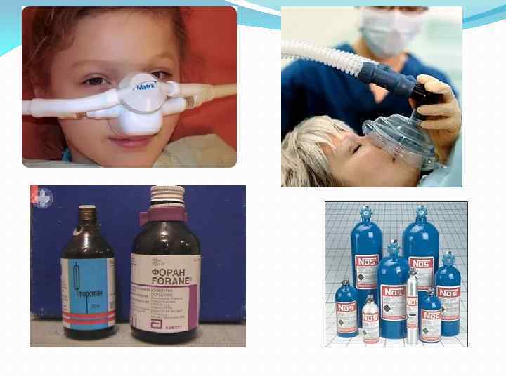 Наркоз подразделяют на: - Ингаляционный -Неингаляционный -Ингаляционный наркоз основывается на введении общих анестетиков через легкие и проводят жидкими или парообразными анестетиками (диэтиловый эфир, фторотан, трихлорэтилен, пентран, хлороформ) или наркотическими газами (закись азота, циклопропан). Ингаляционный наркоз проводят с помощью ротоносовой или носовой масок (масочный наркоз), назофарингеальной трубки (назофарингеальный), эндотрахеальной трубки, когда наркотическая смесь, минуя верхние дыхательные пути, поступает непосредственно в трахею и бронхи (эндотрахеальный, или интубационный, наркоз). -Для неингаляционного наркоза, основанного на введении общего анестетика внутривенно, через прямую кишку, используются такие препараты, как гексенал, тиопентал-натрий, пропанидид (сомбревин, эпонтол), байтинал, виадрил, оксибутират натрия, кетамин и др. Наркоз можно провести одним анестетиком (мононаркоз, однокомпонентный) или двумя и более анестетиками (многокомпонентный) и совместно с другими лекарственными веществами (комбинированный, смешанный наркоз).