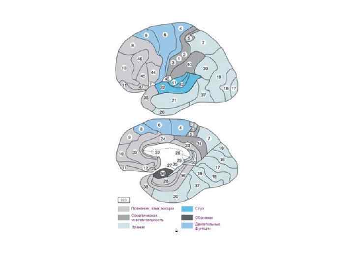 Мозговые центры речи взаимодополняющая специализация полушарий с преобладанием речевых функций обычно у левого полушария (9598%). Правое полушарие - отвечает за эмоциональную окраску речи, темп, ритм – т. е. это просодическая сторона. *У некоторых левшей мозговые центры находятся там же, где и у правшей, либо в правом, либо в обоих полушариях.