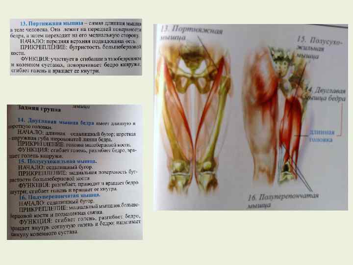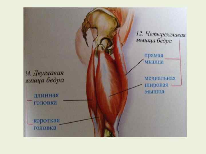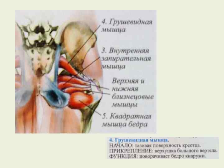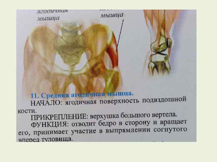 Основные мышцы тазобедренного сустава, их функции и примерные упражнения Подвздошнопоясничняя мышца Малая поясничная мышца Прямая мышца бедра Большая ягодичная мышца Средняя и малая ягодичные мышцы Двуглавая мышца бедра Полусухожильная мышца Полуперепончатая мышца Большая приводящая мышца бедра Короткая и длинная приводящие мышцы бедра Сгибание и Поднимание туловища из положения лежа (ноги вращение наружу бедра прямые) без помощи рук и ног, бег с высоким подниманием коленей; поднимание ног! Натягивает подвздошную фасцию Сгибание бедра и разгибание голени Разгибание и вращение наружу бедра Сведение, пронация и супинация бедра Поднимание туловища из положения лежа (ноги прямые) без помощи рук и ног, бег с высоким подниманием коленей; поднимание ног! Бег, жим ногами, приседания, прыжки со скакалкой Езда на велосипеде, плиометрика, приседания, упражнения на тренажере, имитирующем подъем по ступенькам Ходьба, бег, поднимание ног из положения лежа на боку Разгибание бедра, Езда на велосипеде, сгибание подколенных сухожилий при сгибание и супинация вращении в коленном суставе наружу голени Разгибание бедра, Практически те же. что и для предыдущей мышцы: сгибания сгибание и пронация голени подколенных сухожилий при вращении в коленном суставе наружу Разгибание бедра, Те же, что и для предыдущей мышцы сгибание и пронация голени Приведение бедра Приведение и сгибание бедра Поднимание ног, лежа на боку с сопротивлением приведению