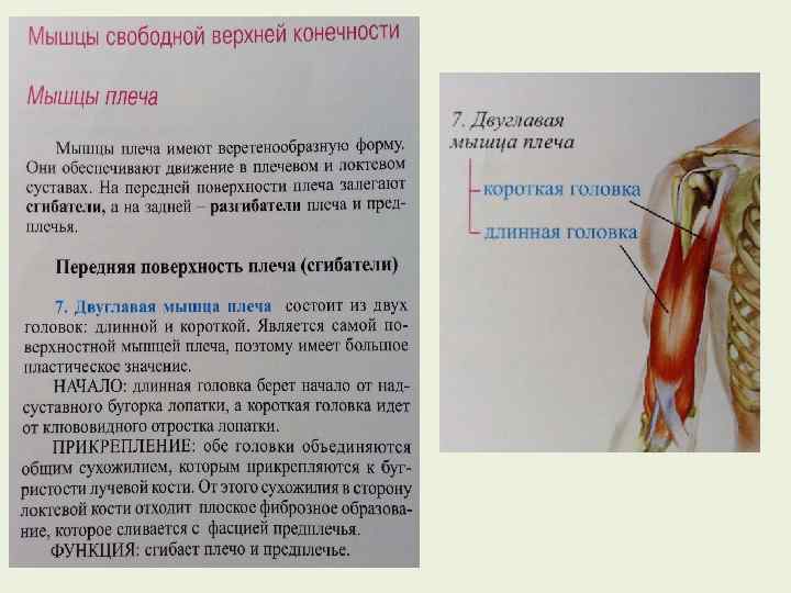 Основные мышцы локтевого сустава, их функции и примерные упражнения Двуглавая мышца плеча Сгибание в локтевом суставе, супинация Поднимание штанги на бицепс гребной тренажер, подтягивание штанги до подбородка, гребля вверх Сгибание в локтевом суставе Те же, что и для двуглавой мышцы плеча Плечелучевая Сгибание в локтевом суставе Те же, что и для двуглавой мышцы плеча Трехглавая Разгибание в локтевом суставе Жим лежа на скамье, отжимания, опускание туловища на параллельных брусьях Плечевая мышца Круглый пронатор Сгибание в локтевом суставе, пронация предплечья Пронация предплечья с гантелями