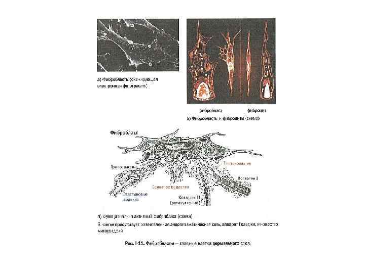 За состоянием межклеточного вещества в дермальном слое следят фибробласты - главные клетки дермы (рис. І-11). Они не только синтезируют новые компоненты матрикса, но и разрушают изношенные. С этой целью в окружающее пространство фибробласты выделяют специальные ферменты, такие как матриксные металлопротеиназы, разрезающие белковые компоненты. Что же касается мукополисахаридов, то процесс их деградации может протекать как ферментативно (при помощи гиалуронидаз), так и неферментативно - путем окисления.