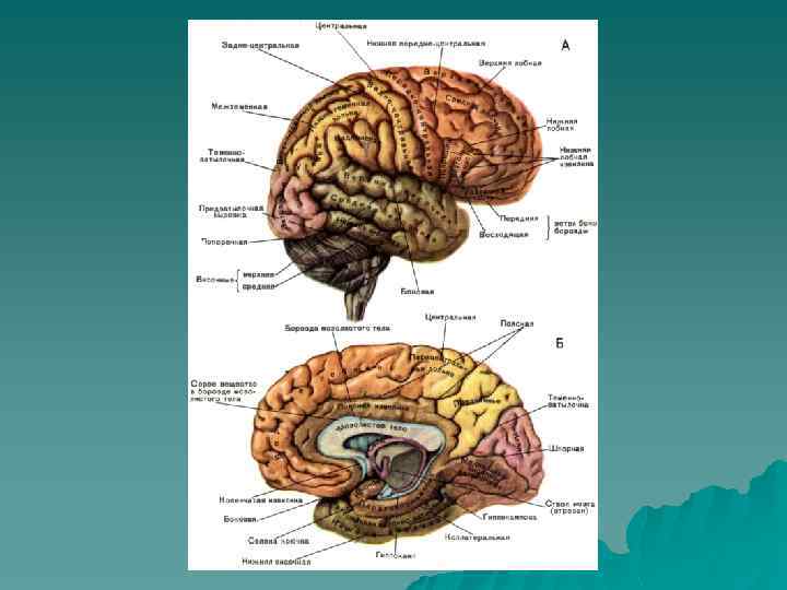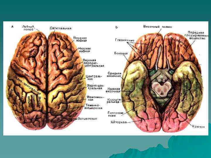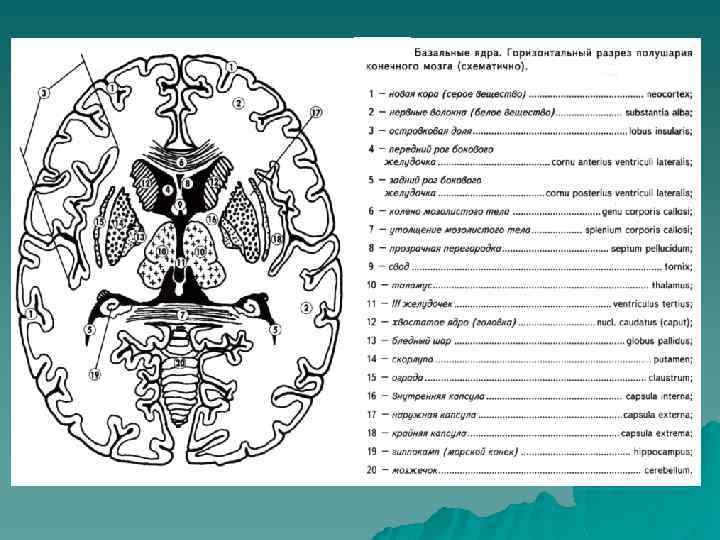 IV. Конечный мозг представляет собой большие полушария, в состав которых входят следующие структуры: u Кора конечного мозга u Белое вещество конечного мозга u Боковые желудочки u Базальные ядра