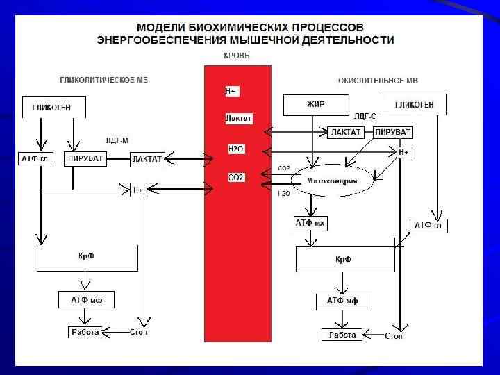 Упражнения по степени воздействия на организм Локальные - менее 40% мышц Региональные - 40 -60% мышц Глобальные свыше - 60 -70% мышц (Платонов, 1984) !!! МОК у обычного человека в среднем 20 л/мин В среднем 50% мышц (при 80 кг – 40 кг мышц) 2 л/мин крови на кг мышц при максимальной нагрузке (10% от МОК) Максимальный кровоток обеспечивает 10 кг мышц (25 %) Таким образом, одновременно может быть активировано не более 1/3 мышечной массы (A. Despopoulos, S. Silbernagi, 2009)