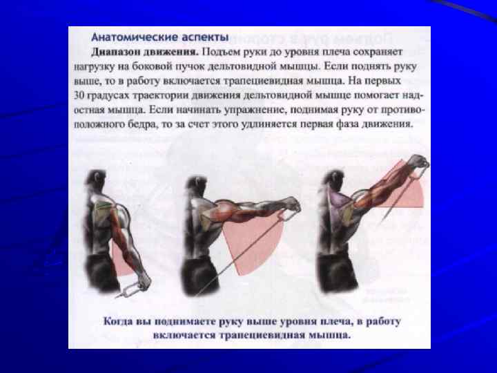 ПРОРАБАТЫВАЕМЫЕ МЫШЦЫ Основные: боковой пучок дельтовидной Дополнительные: передний и задний пучок дельтовидной, трапециевидная, надостная