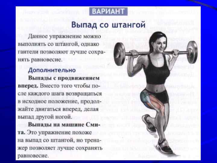 ПРОРАБАТЫВАЕМЫЕ МЫШЦЫ Основные: Четырехглавая мышца, ягодичные Дополнительные: приводящие, задняя группа мышц бедра, мышца, выпрямляющая позвоночник, мышцы живота