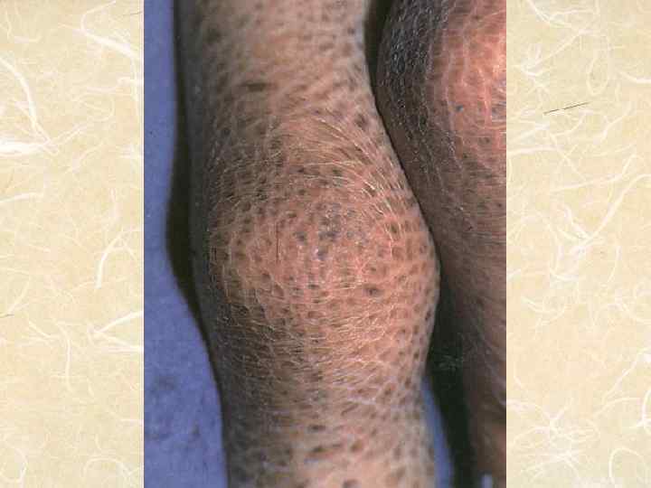 Пролиферационный гиперкератоз формируется в результате повышения функциональной активности клеток эпидермиса, протекая на фоне утолщения зернистого и шиповатого слоев. Ретенционный гиперкератоз формируется в результате замедления процесса отшелушивания клеток рогового слоя. Зернистый слой при этом тонкий или вовсе отсутсвует. Красный плоский лишай Вульгарный ихтиоз