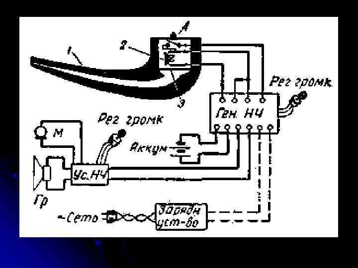 l l Генератор вырабатывает электрические колебания, которые по проводам передаются к вибратору с мембраной , смонтированному в корпусе , напоминающем обычную курительную трубку. Включение генератора производится нажатием кнопки , размещенной сбоку трубки. Таким образом, вибратор при нажатии кнопки выполняет функции утраченных голосовых связок. Звуковые колебания по каналу трубки подаются в полость рта, где они с помощью артикуляционного аппарата - язык, губы и т. д. - модулируются и превращаются в достаточно четкую речь. Речь далее может быть усилена дополнительным усилителем с громкоговорителем.