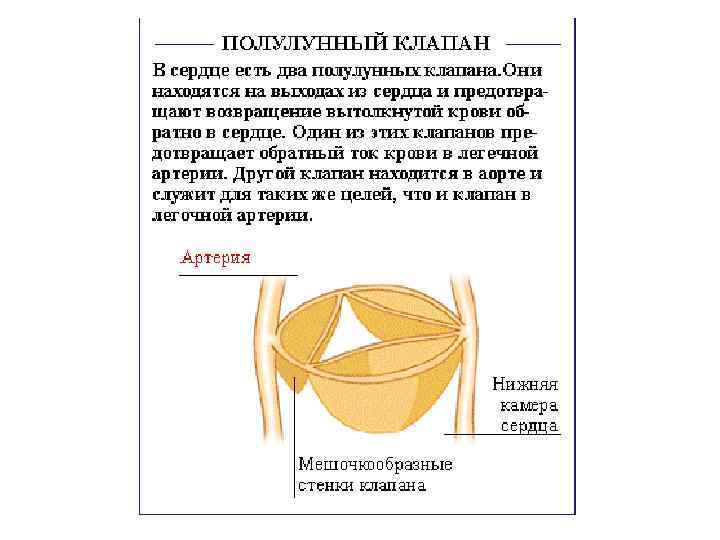 Правый желудочек Внутренняя поверхность полости правого желудочка имеет многочисленные мясистые перекладины и конусовидные выступы, которые называются сосочковыми мышцами. От верхушки сосочковых мышц к свободному краю трехстворчатого клапана тянутся сухожильные струны, препятствующие вывертыванию трехстворчатого клапана в сторону предсердия при систоле желудочка. Из правого желудочка выходит легочный ствол, по которому к легким течет венозная кровь. Отверстие его при диастоле (расслаблении) правого желудочка закрывается клапаном легочного ствола, состоящим из трех полулунных клапанов в виде кармашков. Этот клапан препятствует обратному току крови из легочного ствола в правый желудочек.