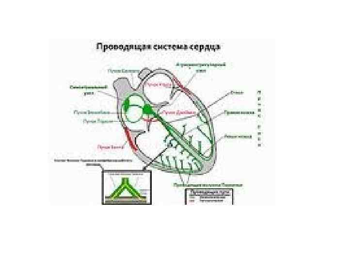 Проводящая система сердца vсинусово-предсердный узел, vпредсердно-желудочковый узел v предсердно-желудочковый пучок. Импульсы, вызывающие сокращение сердца, возникают в синуснопредсердном узле, поэтому его называют водителем ритма сердца Он расположен в стенке правого предсердия, между верхней полой веной и правым ушком. Далее импульсы распространяются по предсердиям к предсердно-желудочковому узлу, который лежит в стенке правого предсердия над трехстворчатым клапаном. От предсердно-желудочкового узла импульсы идут на миокард желудочков по предсердно-желудочковому пучку, прилежащему к перегородке желудочков. Этот пучок делится на правую и левую ножки, которые разветвляются в миокарде соответствующих желудочков.