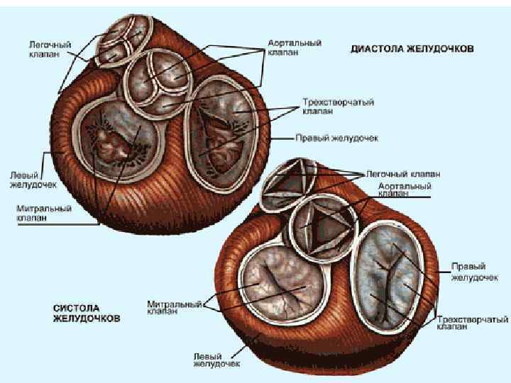 • • Функции клапанов сердца. Для того чтобы кровь в результате чередования сокращения с расслаблением миокарда передвигалась только в одном направлении – от вен к артериям – необходима согласованная работа клапанов. В сердце существуют два вида клапанов. Клапаны расположены «на входе» и на «выходе» обоих желудочков сердца. Это – атриовентрикулярные клапаны. В левом желудочке - митральный клапан, в правом - трехстворчатый препятствуют обратному забросу крови в предсердия во время систолы желудочков.