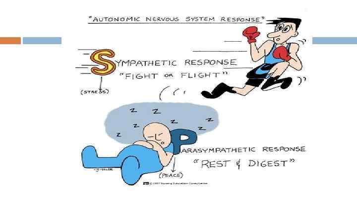 Функциональное деление Соматическая (анимальная) нервная система – часть НС человека, представляющая собой совокупность чувствительных и двигательных нервных волокон, иннервирующих скелетные мышцы, кожу, суставы. Автономная (вегетативная) нервная система – отдел нервной системы, регулирующий деятельность внутренних органов, желёз внутренней и внешней секреции, кровеносных и лимфатических сосудов. Симпатический отдел – преганглионарные волокна короткие, постганглионарные – длинные; активируется при стрессовых состояниях. Парасимпатический отдел – преганглионарные волокна длинные, постганглионарные – короткие; оказывает разнонаправленное влияние на различные органы. Метасимпатический отдел – комплекс микроганглионарных образований (интрамуральных ганглиев) и соединяющих их нервов, а также отдельные нейроны и их отростки, расположенные в стенках внутренних органов (выделяется условно, считается частью парасимпатического отдела).