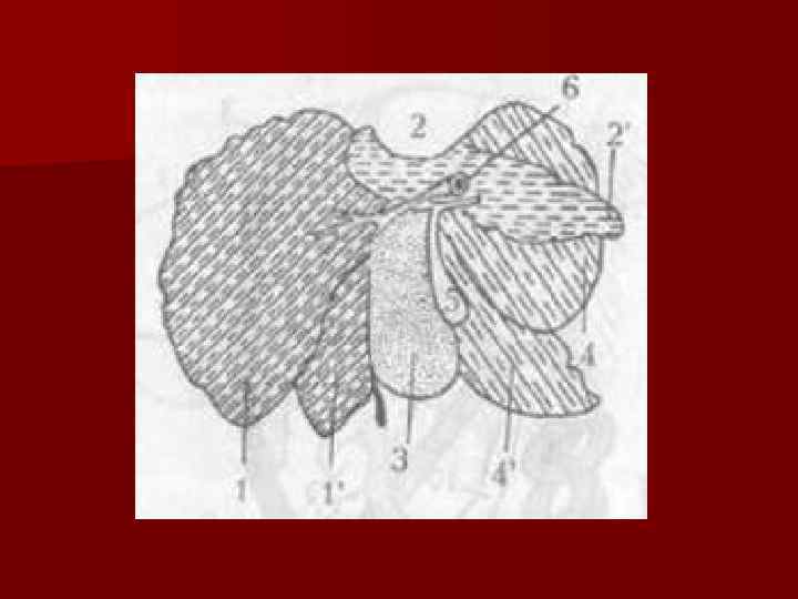 Доли n Правая латеральная n Правая медиальная n Квадратная n Хвостатая (хвостатый и сосцевидный отростки) n Левая медиальная n Левая каудальная