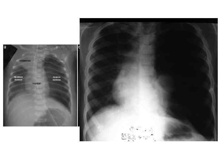 Дыхательная система Respiratory system • Нос короткий, нижний носовой ход недоразвит, а остальные — узкие. Слизистая оболочка полости носа тонкая, обильно снабжена кровеносными сосудами, склонна к отеку. • Легкие новорожденного богаты кровеносными сосудами, межуточной тканью и бедны эластической тканью. Лимфатические щели и капилляры широкие. Вследствие этих особенностей легкие более полнокровны, менее воздушны и эластичны, что создает условия для возникновения застойных явлений и развития инфекции. • The nose is short, the lower nasal passage underdeveloped, and the rest narrow. The mucous membrane of the nasal cavity is thin, richly supplied with blood vessels, prone to edema. • Lungs of a newborn is rich in blood vessels, interstitial tissue and is poor in elastic tissue. Lymphatic capillaries and cracks wide. Due to these features light a fuller, less airy and stretchy, which creates conditions for the emergence of stagnation and the development of infection.