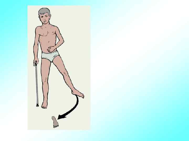 • При ряде заболеваний у детей могут наблюдаться расстройства движений, проявляющиеся в виде: паралича (плегии) – полная утрата мышечной силы и активных движений или пареза – ослаблении мышечной силы и уменьшение объема движений. Эти расстройства возникают при поражении центрального и периферического нейронов. Моноплегия – паралич 1 конечности, параплегия – паралич 2 конечностей, гемиплегия – паралич половины тела, тетраплегия –паралич 4 конечностей.