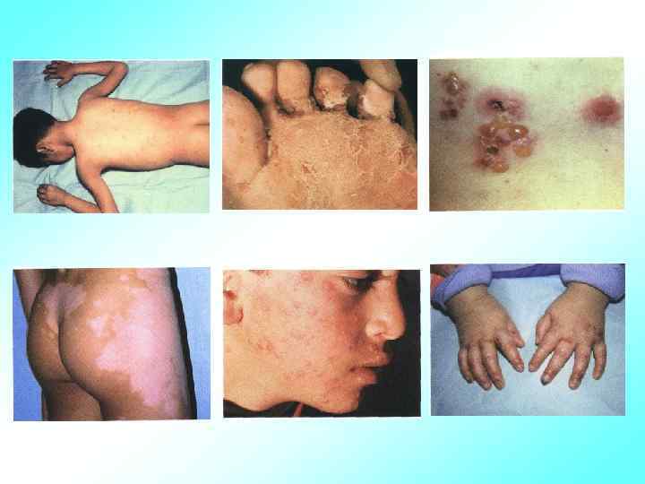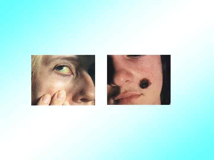 Основные нарушения со стороны кожи • Цвет кожных покровов: • Бледность кожи (истиная анемия, псевдоанемия) • Желтизна кожи (алиментарного генеза, вирусный гепатит, несовместимость Rh и ABO систем крови, атрезия желчных путей и др. )