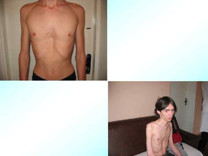 СЕМИОТИКА ПОРАЖЕНИЯ КОСТНОЙ СИСТЕМЫ У исследовать в Конечности ребенка необходимо. ДЕТЕЙ положении лежа и стоя: оценивают их форму, соотношение длины конечностей между собой, а также к общей длине тела, пальпаторно обследуют кости, доступные для ощупывания. • При многих врожденных и наследственных заболеваниях (синдромах Баквина—Айгера, Бартенверфера, Мартена— Олбрайта, Моркио, Пайла, Парро, Фанкони Альбертини и др. ) наблюдается укорочение в сочетании с искривлением конечностей. • К аномалиям развития конечностей относятся: многопалость, брахидактилия, чрезмерно длинные пальцы, синдактилия, полное отсутствие конечностей, кистей, пальцев рук и ног.