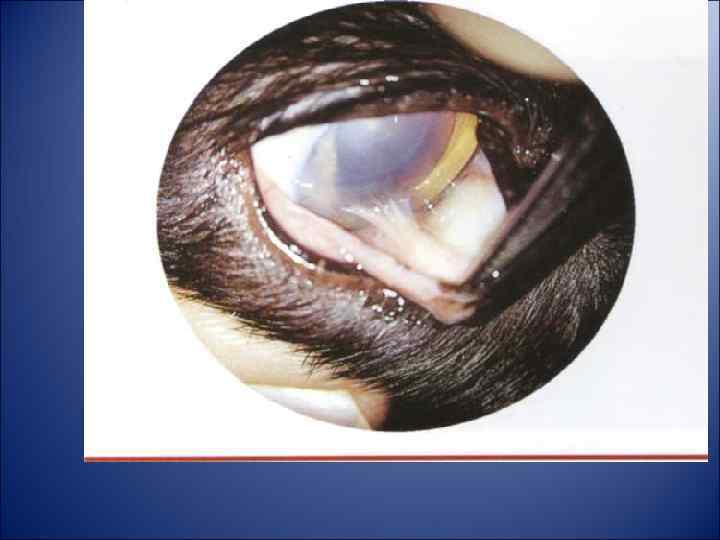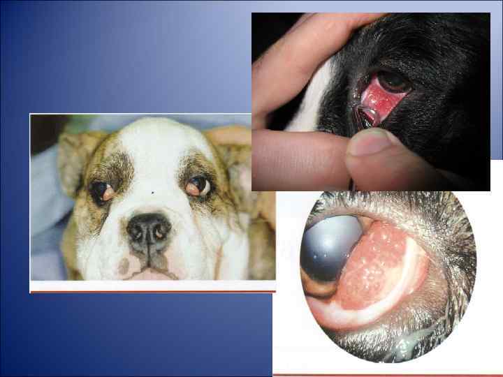 ПАТОЛОГИЯ ТРЕТЬЕГО ВЕКА Выпадение (пролапс) железы третьего века. Наиболее часто у представителей пород: французский и английский бульдог, кокер-спаниель, мастино, той-терьер, мопс, кане-корсо, чихуахуа, пекинес и др. У кошек такая патология встречается сравнительно редко и преобладает, у кошек персидской и британской породы. Клиническая картина. В медиальном углу глазной щели визуализируется розовато-красное образование округлой формы (cherry eye - вишневый глаз). Тяжесть клинических симптомов напрямую зависит от степени выпадения железы. При выраженной гиперплазии слезной железы третьего века практически невозможно самопроизвольное вправление, а вправление с помощью пинцета не дает стойкого результата. Значительно более выражены и клинические симптомы: отек, гиперемия конъюнктивы, обильное слизистое отделяемое, сильное слезотечение. Пролапс может быть настолько сильным, что нарушается акт моргания (неполное смыкание век), это приводит к нарушению обновления слезной пленки и поражению роговицы. Лечение. Хирургическое. Следует отметить, что удалять саму железу нельзя, все методы коррекции сводятся к различным способам фиксации железы в нормальном положении. Удаление железы третьего века является предрасполагающим фактором к развитию такой серьезной патологии, как сухой кератоконъюнктивит.
