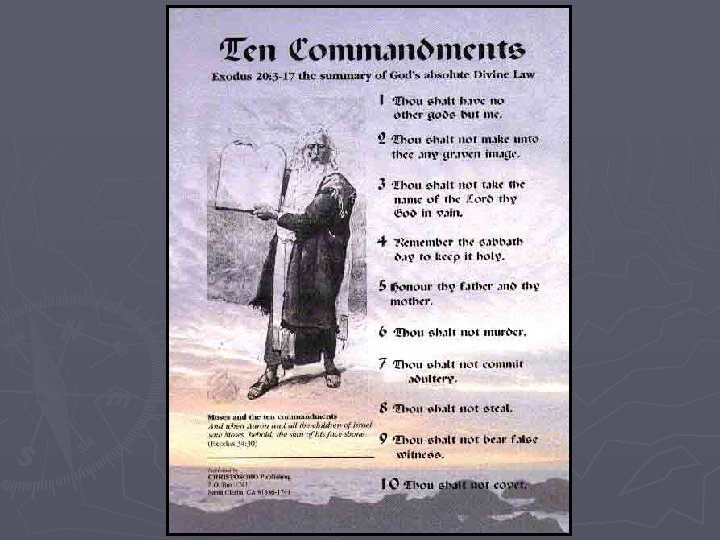 Moses & Exodus: “Let My People Go!” Moses received revelations from God: burning bush, rod / staff, 10 plagues, parting of the Red Sea ► End of 13 th century BCE- Moses led the Israelites out of bondage in Egypt during Rames II reign called the EXODUS ► Moses led the 12 Tribes of Israel to Mount Sinai where Yahweh gave him the 10 Commandments, uniting the Hebrews under one God ► Moses and Hebrews searched for the “Promised Land” or the land of milk and honey, however they wandered in the desert for 40 years ►