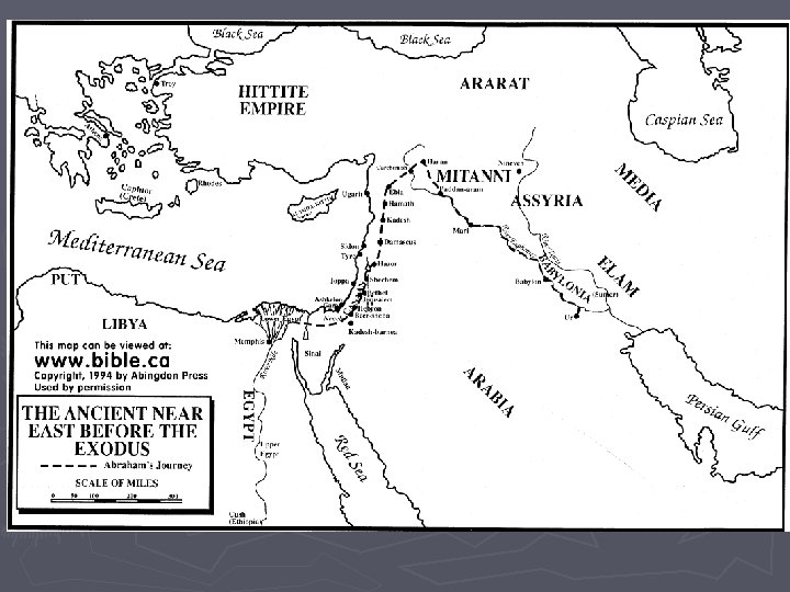 Tracing Roots of Israel’s History ► ► ► Nomadic tribes wandered into Palestine from east in approximately 1900 BCE Mesopotamian society dominated by polytheism God (Yahweh) appeared before Patriarch Abraham and told Abraham “to go and raise a great nation” This began the monotheistic tradition of the Hebrew faith with the establishment of the “Covenant”, “Chosen People” and “Promised Land” Abraham settled in Canaan Story: Sacrifice of Abraham