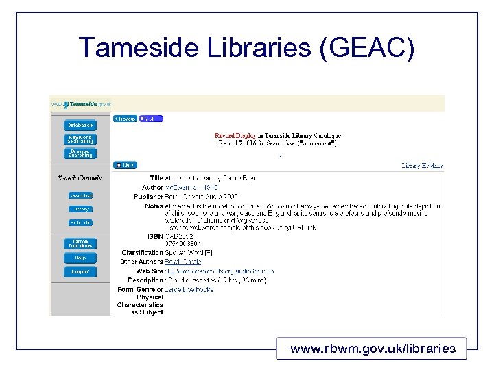 Tameside Libraries (GEAC) www. rbwm. gov. uk/libraries
