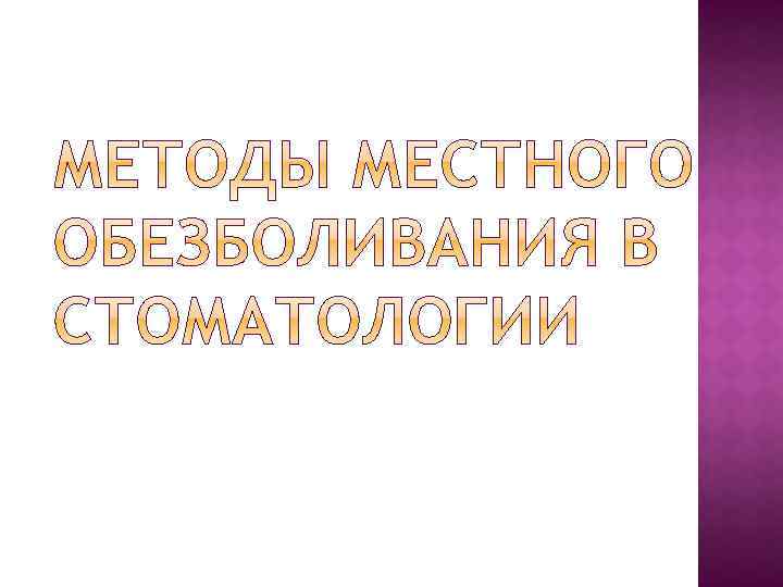 МЕСТНАЯ АНЕСТЕЗИЯ - ВЕДУЩИЙ СПОСОБ ОБЕЗБОЛИВАНИЯ В ХИРУРГИЧЕСКОЙ СТОМАТОЛОГИИ, ВКЛЮЧАЕТ СЛЕДУЮЩИЕ МЕТОДЫ: НЕИНЪЕКЦИОННУЮ (ФИЗИЧЕСКАЯ И ХИМИЧЕСКАЯ) И ИНЪЕКЦИОННУЮ (ИНФИЛЬТРАЦИОННАЯ И ПРОВОДНИКОВАЯ) АНЕСТЕЗИИ. НЕИНЪЕКЦИОННАЯ АНЕСТЕЗИЯ ПРЕДПОЛАГАЕТ ИСПОЛЬЗОВАНИЕ ЛЕКАРСТВЕННЫХ ПРЕПАРАТОВ, ВОЗДЕЙСТВИЕ ФИЗИЧЕСКИМИ И ДРУГИМИ ФАКТОРАМИ ДЛЯ ПОЛУЧЕНИЯ ЭФФЕКТА ПОВЕРХНОСТНОГО ОБЕЗБОЛИВАНИЯ ТКАНЕЙ. ПРИ ИНЪЕКЦИОННОЙ АНЕСТЕЗИИ НАБЛЮДАЕТСЯ БЛОКАДА БОЛЕВОЙ ЧУВСТВИТЕЛЬНОСТИ В МЕСТЕ ВВЕДЕНИЯ АНЕСТЕТИКА (ИНФИЛЬТРАЦИОННАЯ) ИЛИ В ЗОНЕ ИННЕРВАЦИИ ВЕТВЕЙ НЕРВА (ПЕРИФЕРИЧЕСКАЯ ИЛИ ЦЕНТРАЛЬНАЯ ПРОВОДНИКОВАЯ АНЕСТЕЗИЯ).