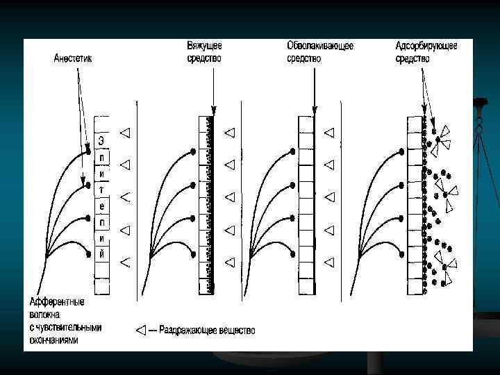 ХАРАКТЕРИСТИКА СРЕДСТВ, СТИМУЛИРУЮЩИХ ОКОНЧАНИЯ АФФЕРЕНТНЫХ НЕРВОВ. К этой группе относятся вещества, оказывающие избирательное возбуждающее влияние на окончания чувствительных нервов кожи и слизистых оболочек, возникающие при этом рефлексы проявляют определенное фармакологическое действие.