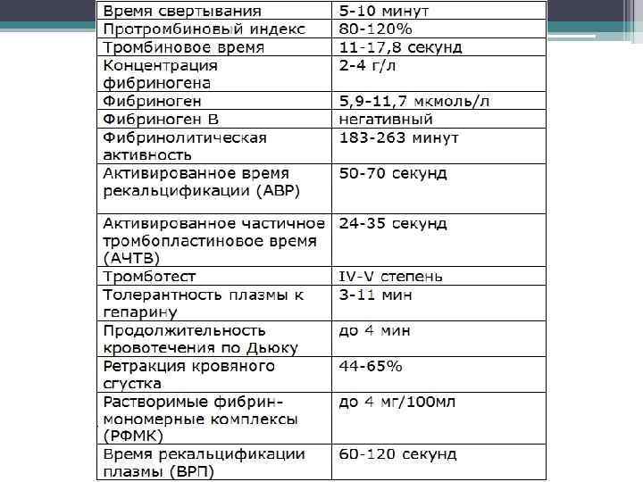 • В гемостатической терапии широко используется переливание компонентов крови. Наибольшую ценность представляют препараты в форме свежезамороженной плазмы, ее преципитатов и концентратов, содержащие такие факторы свертывающей системы, которые в настоящее время еще не могут быть получены в чистом и пригодном для хранения виде. При отсутствии этих препаратов применяется свежая плазма или свежая донорская кровь. • Глубокая тромбоцитопения требует введения тромбоцитарной массы.