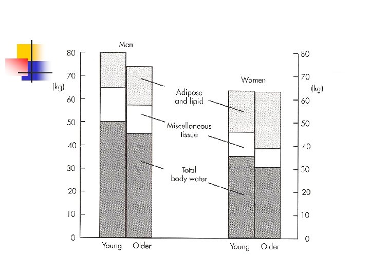 Body Compartments n Decline in total body water n n intracellular water plasma volume maintained n Less lean tissue & skeletal muscle mass n Increase proportion of fat