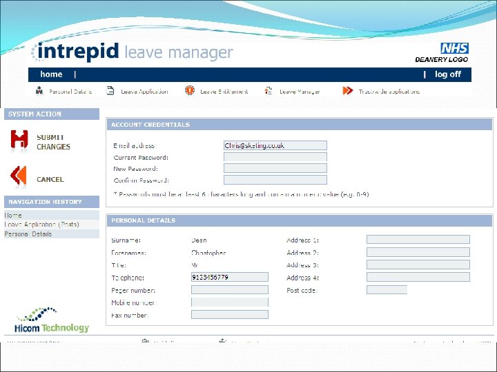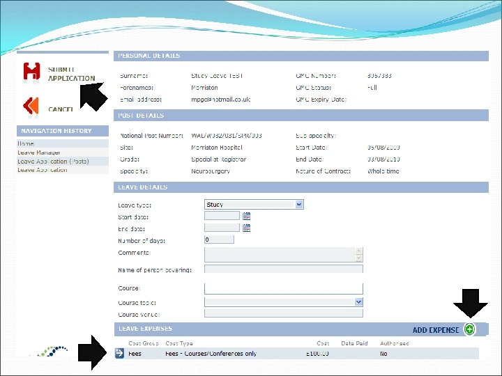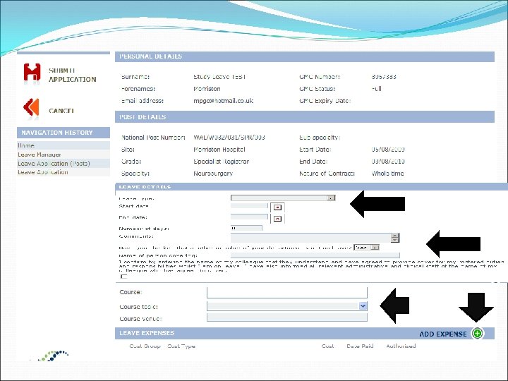 The Trainees’ View Personal Details - update your contact details / password etc Leave Application - apply for study leave Leave Entitlement - check how many study leave days you have left Leave Manager - check your study leave history and track the approval Trust Wide Applications – check if any of your colleagues are away at the same time