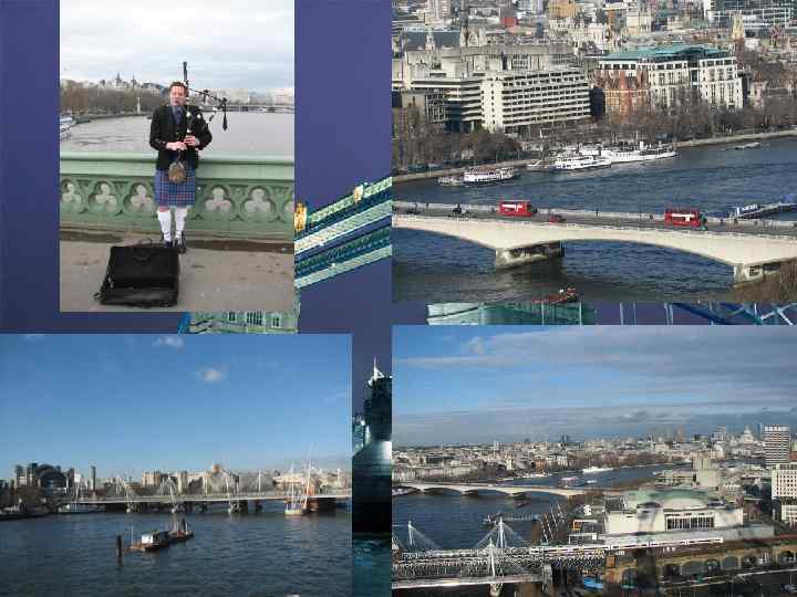 Лондон • География: на р. Темзе (64 км от устья), занимает низменность между грядами Чилтерн-Хилс и Норт-Даунс. • Площадь города: 1560 км 2 Население: в центральной части 10 тыс. , Большом Лондоне 7 млн. , в Лондонской городской агломерации — около 11 млн. , а в Юго-Восточном регионе — около 17 млн. Население Большого Лондона сокращается, продолжается приток молодежи из других районов страны Климат: осадков 500 мм, Средняя температура июля около 17° C. января +4° С. Темза в Лондоне ни разу не замерзала с 1814. Церкви: Вестминстерское аббатство (XIII-XVIII вв. ) и грандиозный Сент Пол — собор Св. Павла (XVII-XVIII вв. ). • • • Парки: Гайд-Парк, Риджентс-Парк с зоопарком, Кью-Гайднз с оранжереей, аквариумом и «Домом бабочек» , Сент-Джеймс • • • Развлекательные центры: Ковент-Гарден, «Хард-рок кафе» (который посещали Битлз, Элвис Пресли, Мик Джэггер), джаз - «Клуб 100» .