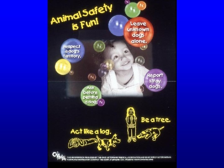 Dog Bites and Children • 50% victims are children under age 12 • 70% fatal attacks involve children • Dog bites are 3 rd leading cause of ER injury admissions in children - after bike and baseball/softball injuries Canine Aggression Task Force, JAVMA, 128, 11, June 1, 2001
