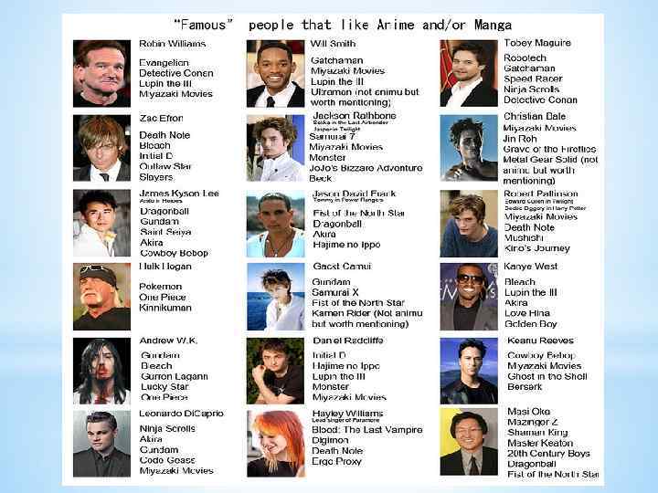 *Аниме – японская анимация, рассчитанная в основном на детскую аудиторию *Для него характерна особая манера рисования персонажей и фонов *В большинстве издается в форме сериалов, но есть и полнометражные фильмы * Первопроходцами в области японской мультипликации стали Симокава Отэн, Дзюнъити Коти и Сэитаро Китаяма