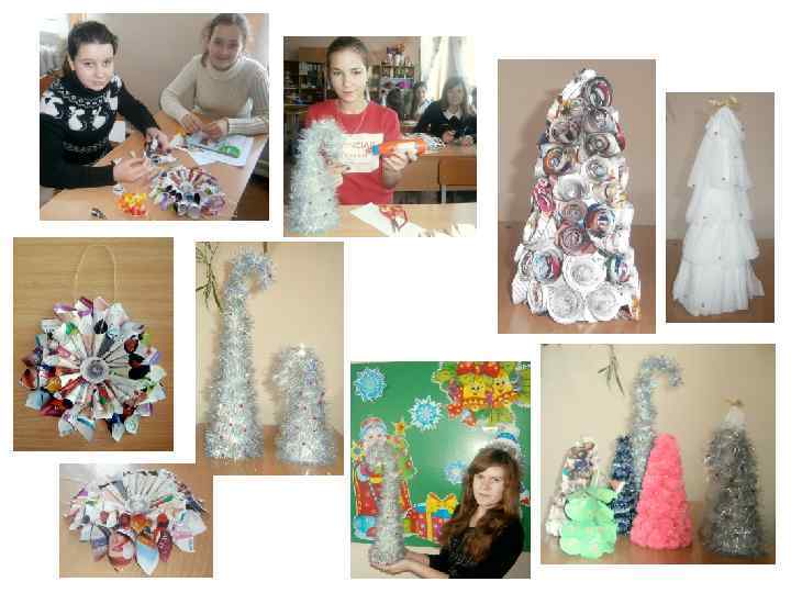 Використання вторинної сировини в новорічних іграшках Перейшовши поріг ХХІ століття перед людством постала глобальна проблема – засмічення нашої планети Земля! Але, як відомо, з появою проблеми виникають і шляхи її вирішення. Наше суспільство активно використовує в побуті лампи розжарювання, пластикові пляшки, та журнали. Після того як ці речі виконають свої функції, люди викидають їх на сміття, хоча перед Новим роком дані матеріали можна використати повторно, якщо проявити креативність та творче мислення, з них вийдуть чудові ялинкові прикраси! Не всі з нас відмовилися від використання звичайних ламп розжарювання на користь енергозберігаючих. А всім знайома лампочка Ілліча, як відомо, має звичай перегорати з постійною регулярністю. Відпрацьовану лампу розжарювання за допомогою нехитрих маніпуляцій можна перетворити на чудову ялинкову іграшку. З лампи напередодні Нового року проявивши свій талант можна зробити симпатичні ялинкові іграшки. З пластикових пляшок можна змайструвати багато різних, корисних і цікавих поробок. У тому числі з цього непридатного матеріалу виходять чудові дитячі іграшки. Такі, як, наприклад, сніговики, пінгвіни. Зі старих журналів можна виготовити новорічну зірку. Яскраві і барвисті сторінки старих журналів - як часто нам шкода їх викидати, здавати в макулатуру. . . Якесь незрозуміле почуття змушує нас нескінченно складувати читані і перечитані видання на нижніх полицях своїх книжкових шаф. З них можна зробити гарні новорічні зірки.