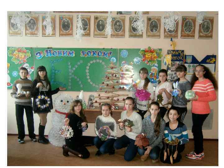 Анкета-заявка учнівського колективу 1. Використання вторинної сировини в новорічних іграшках. З непотрібного – рекреаційна творчість. 2. Бермас К. , Дульдієр Д. , Кушнір Н. , Кагал Ю. , Решетник О. , Долгоєров Б. , Маліченко А. , Стебельська А. , Головата Д. , Капацина В, Басанець В. , Цап К. , Ткаченко П. , Клименко Т. 3. Лисогірська загальноосвітня школа І – ІІІ ступенів № 1 Миколаївська область Первомайський район с. Лиса Гора Вул. Велика 66 63216, lysogirska@email. ua 4. Бєлєнцова О. В. , Лисогірська ЗОШ № 1, вчитель історії та географії.