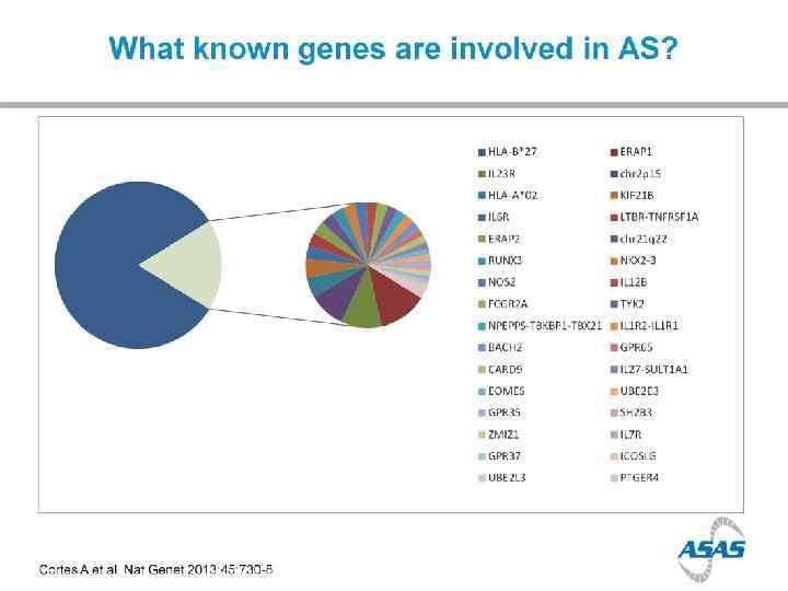 HLA B 27 1970 s HLA B 27 + in 90% of Caucasian AS pt Only 5% of HLA B 27+ persons will have AS HLA B 27 represents only about 25% of ‘genetic risk’ for AS