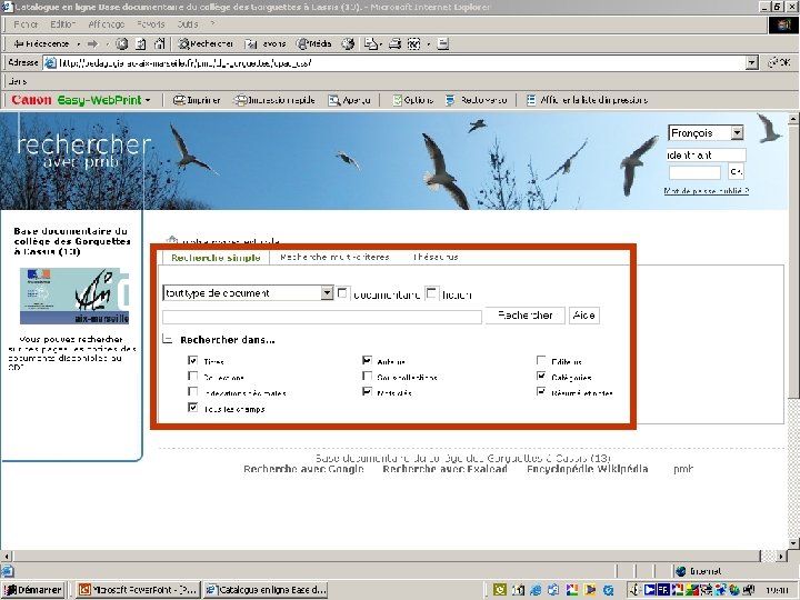Voilà, c’est terminé! Tu peux maintenant aller sur PMB et commencer tes recherches http: //pedagogie. ac-aix-marseille. fr/pmb/clg-gorguettes/opac_css/