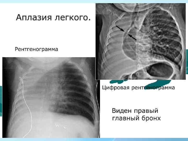 Аплазия – порок развития, при котором отсутствует легкое или его часть при наличии культи рудиментарного главного бронха. агенезия аплазия