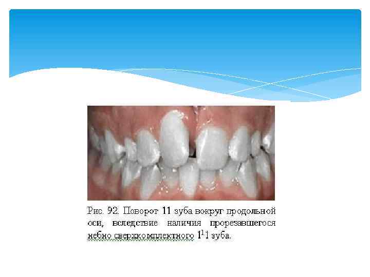 мезиопозиция зубов – наклон или корпусное смещение боковых зубов кпереди по зубной дуге супрапозиция зубов – окклюзионная поверхность зуба располагается выше окклюзионной плоскости зубного ряда инфрапозиция зубов – окклюзионная поверхность зуба располагается ниже окклюзионной плоскости зубного ряда