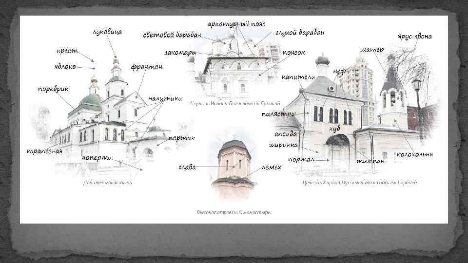 Создание ансамбля Московского Кремля: 1482— 95 гг. Кремль — Антонио Джиларди (Антон Фрязин) из Виченцы, Пьетро Антонио Солари (Петру Фрязину) из Милана, Алоизио да Карезано — Алевиз Старый; Теремной дворец — 1635 - 1636 гг. , Б. Огурцов, А. Константинов, Т. Шарутин, Л. Ушаков; Грановитая палата — 1487 - 1491 гг. , М. Руффо, П. Солари; Колокольня Ивана Великого — 1505 - 1600 гг. , Бон Фрязин; Архангельский собор — 1505 - 1508 гг. , Алоизио да Карезано — Алевиз Старый; Благовещенский собор — 1484 - 1489 гг. , псковские мастера; Успенский собор — 1475 - 1479 гг. , Аристотель Фиораванти.