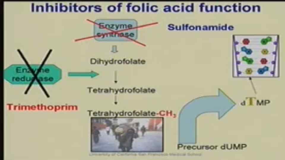 Препараты Описание и принцип действия Клинические проявления Сопротивляемость Триметоприм Блокирует второй метаболический шаг в формировании фолиевой кислоты с ПАБК, синергетический с сульфонамидами Спектр действия: Широкий: эффективны против G+ и G-бактерий и некоторых простейших и грибов, однако сопротивления широко распространено Клетки которые требуют фолиевой кислоты в качестве натурального витамина , частота хромосомных мутаций в результате снижена , сродство к наркотикам Пути введения: Oral Побочные эффекты: аллергические реакции у некоторых пациентов Nhroimidazoles Способ действия неизвестен Спектр действия: трихомонады, None Gtardia и Entamoeba Пути введения: Oral Побочные эффекты: метронидазол предполагается, вызывают рак нет