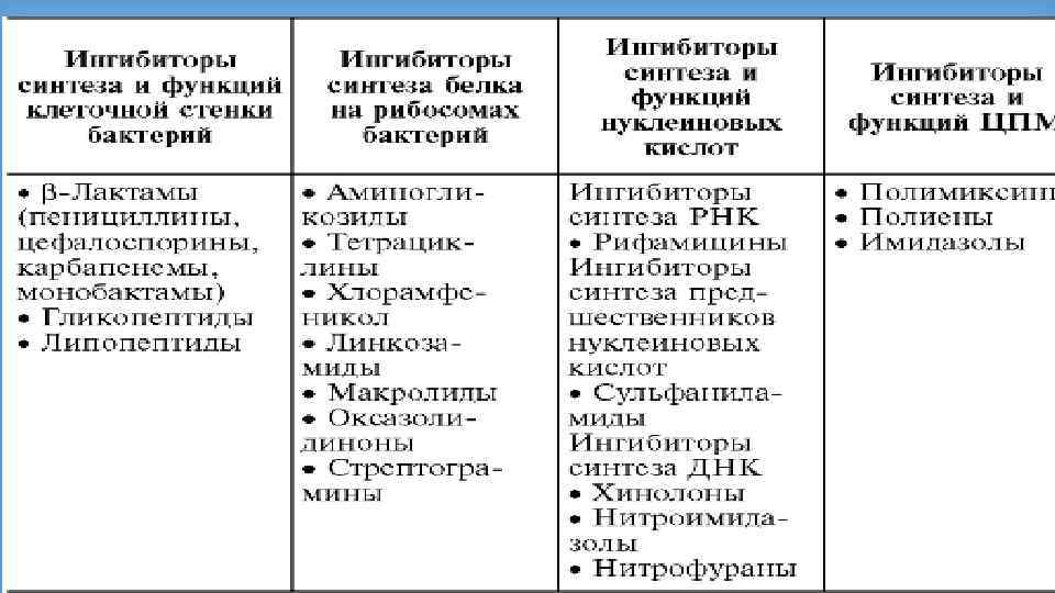 По молекулярному механизму действия 1)ингибиторы синтеза клеточной стенки м/о (пенициллины, циклосерин и др. ) http: //www. xumuk. ru/encyklopedia/306. html