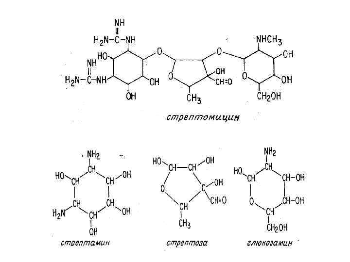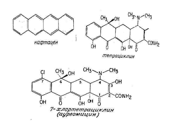 - Аминогликозидтік антибиотиктер – стрептомицин, - Нафтацен туындылары – тетрациклиндер, - Пептидтік антибиотиктер: грамицидин, бацитрацин, - Полиен антибиотиктер – нистатин, амфотерицин В. стрептомицин, грамицидин тетрациклин