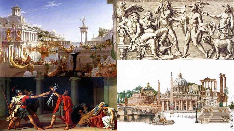 Культура Давнього Риму стала завершальним етапом у розвитку античної культури. В еволюції давньоримської культури виділяють такі основні періоди: царський (УШ-ІІ ст. до н. е. ); період Римської республіки (510 р. до н. е. 31 р. до н. е. ); епоха Римської імперії (31 р. до н. е. - 476 р. н. е. ). Римська античність сприйняла багато елементів давньогрецької культури. Так, римська міфологія значною мірою повторює грецьку: до неї включені олімпійські боги, частина з яких ототожнюється з римськими і носить їхні імена. Архітектура Риму використовує грецькі ордерні форми. У римській філософії еклектично сполучаються принципи різних учень грецьких мислителів. Особливого поширення набувають скептицизм і стоїцизм (Сенека, Марк Аврелій).