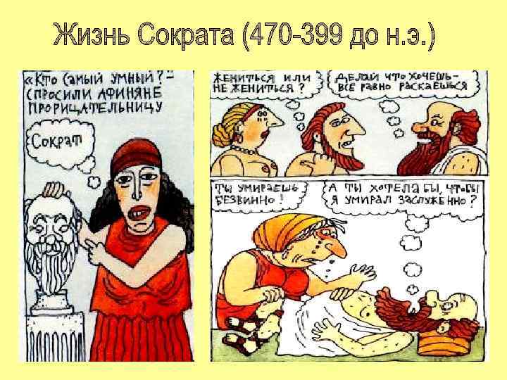 Философия Сократа ФИЛОСОФИЯ – ЭТО ЖИВОЕ РАССУЖДЕНИЕ, РЕЧЬ Ее форма – ДИАЛОГ, БЕСЕДА Ее предмет – духовнонравственные проблемы человека (поиск истины, смысла жизни, образа жизни, отношение к смерти) Ее методы: ИРОНИЯ – легкая провоцирующая усмешка; МАЙЕВТИКА – искусство помощи в рождении истины