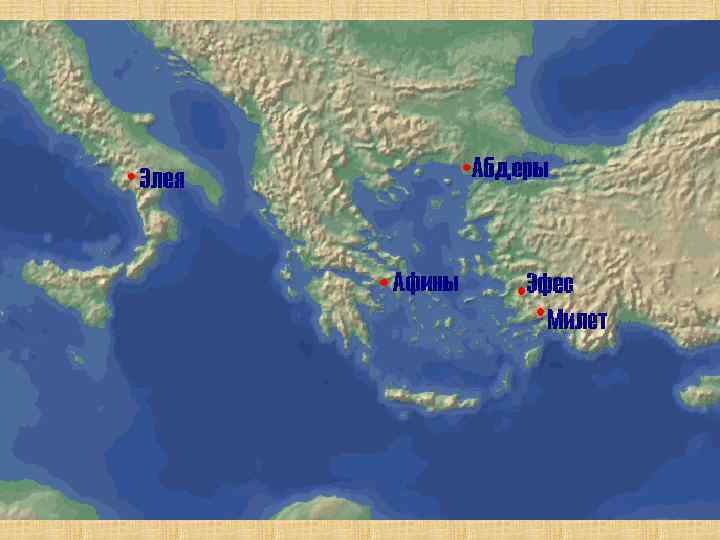Милетская школа • Представители – Фалес Милетский, Анаксимен, Анаксимандр. • Особенности – поиск единого первоначала, из которого возник окружающий мир, мифологичность. • Этим первоначалом считали вполне конкретные чувственные образования (природные стихии), поэтому её относят к «наивному» материализму. • Все представители занимались также естественными науками, обладали энциклопедическими познаниями.