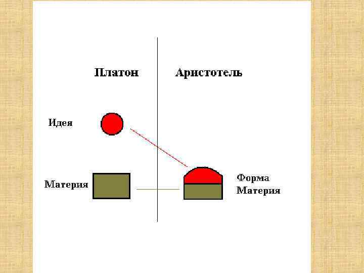 • В отличие от Платона, у Аристотеля идея (форма) вещи существует не в каком-то мире идей, а представлена в самой вещи как её сущность.