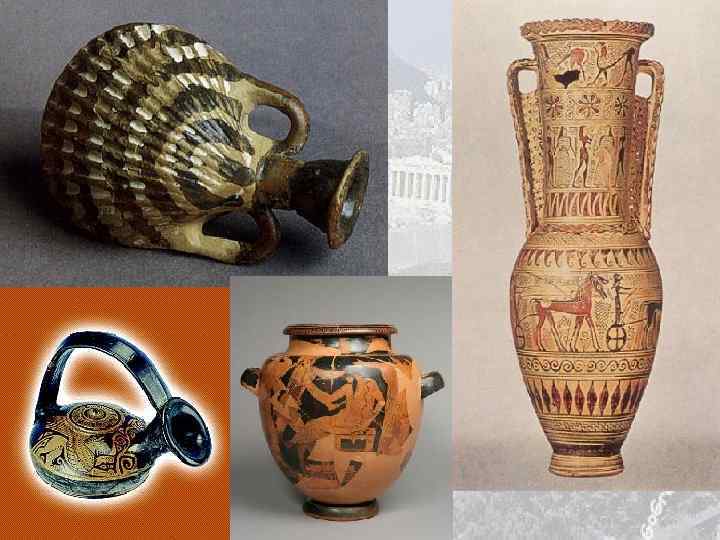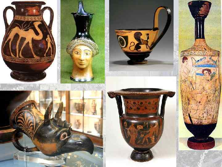 ДОСТИЖЕНИЯ ИСКУССТВА АНТИЧНОЙ ГРЕЦИИ v. Керамические вазы и их роспись: несколько десятков неповторимых форм, расписанных в геометрическом, чернофигурном и краснофигурном стилях.