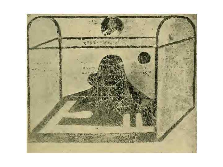 Косьма Индикоплов • Автор «Христианской топографии» • Мир – плоский, он устроен по принципу «скинии» (святилища) Моисея, описанного в Ветхом завете: продолговатое сводчатое строение на плоской поверхности, разделённое небесным сводом на две расположенные друг над другом части. • Эти части соответствуют двум состояниям бытия: состоянию смертности внизу, где живут люди, и состоянию бессмертия и совершенства вверху. Верхняя часть откроется только в конце времён.